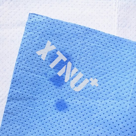 SMPE Nonwoven fabric is made of 25% Pp spunbond and 75% Melt-blown, reinforced by heat sealing and then hydrophilic treated, finally glue coated with PE film.