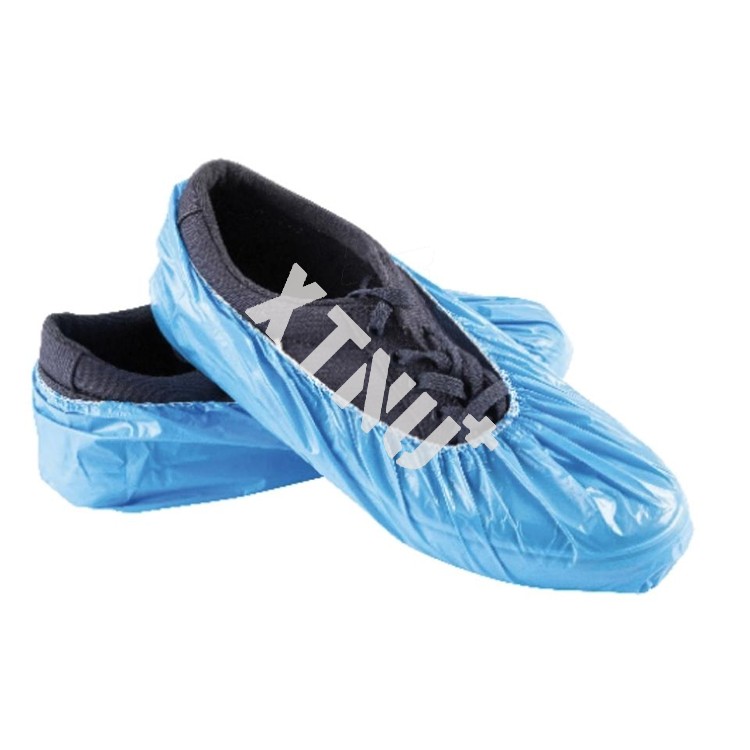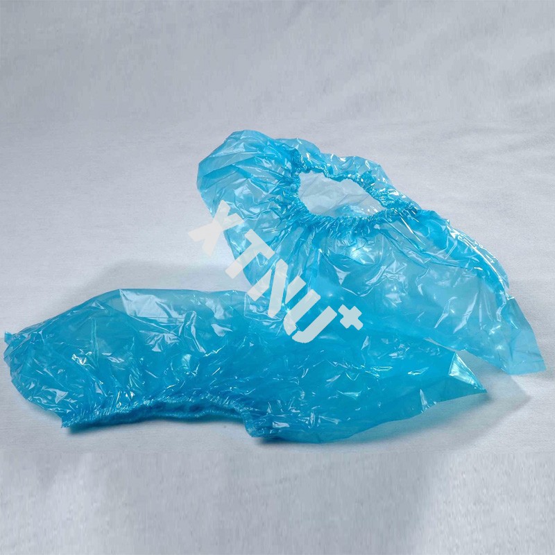PE waterproof shoe cover is commomly used waterproof and dustproof articles for the convenience of people who do not to take off their shoes and protect the environment from pollution. And this cover is made of plastic to prevent shoes from getting wet.