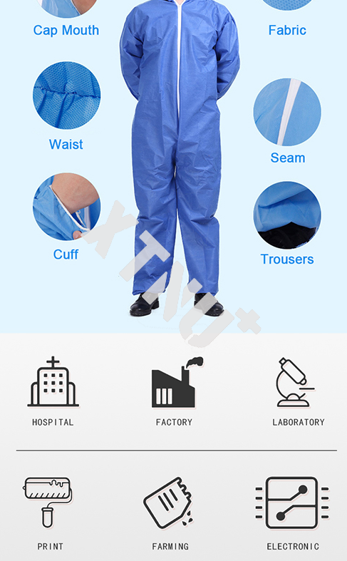 1. Protective clothing is a one-piece structure composed of hat, jacket and trousers.