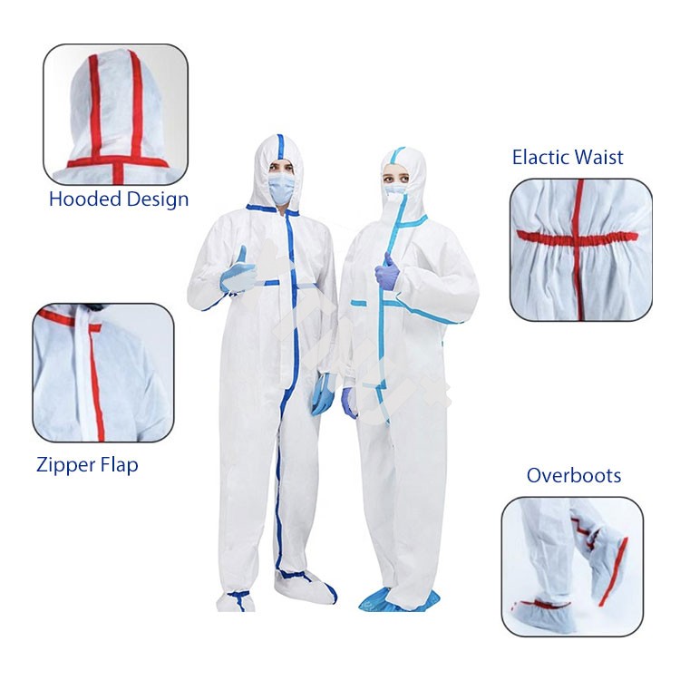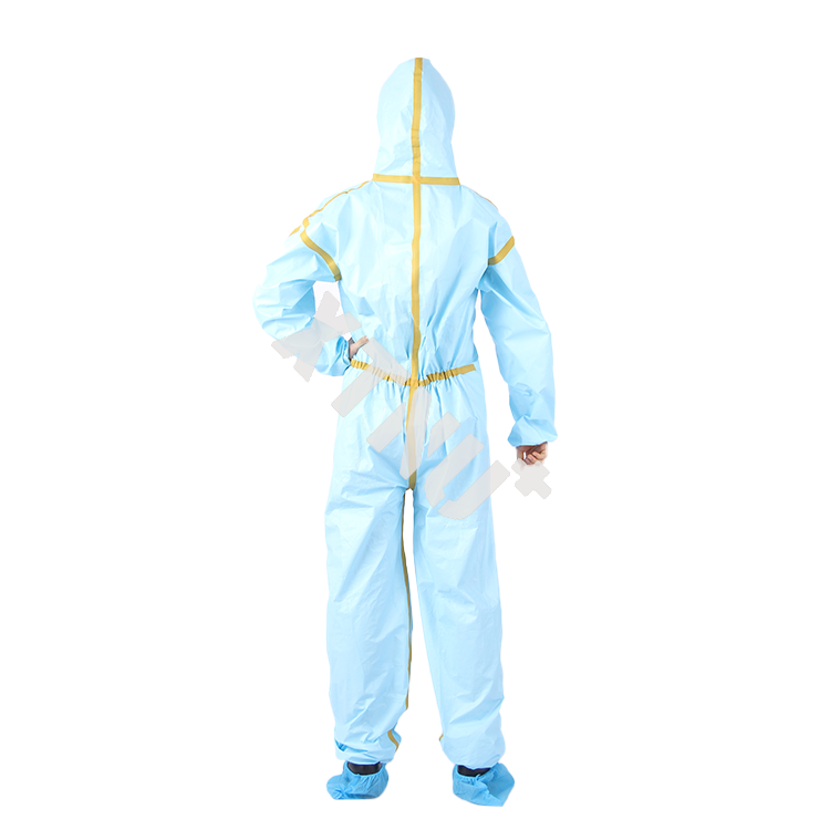 This type of PP+PE disposable isolation garment adds adhesive strips at each seam to enhance the sealing and protection and better protect medical personnel