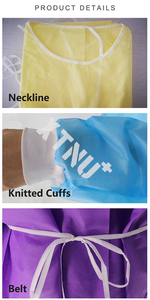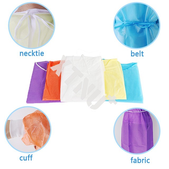 Good physical property: SMS Waterproof Isolation Gown is made of polypropylene fiber directly spread into the net and bonded by heat. The product has better strength than the general staple fiber products, with non-directional strength and similar strength in both directions