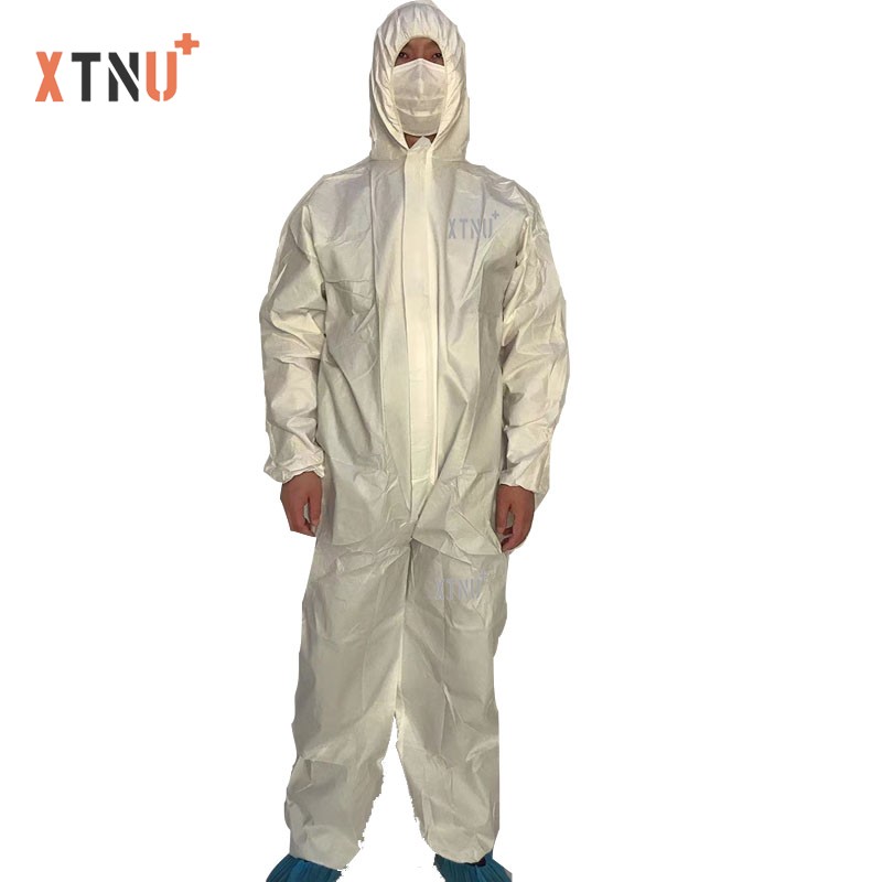 Type 5 And Type 6 Sms Protective Waterproof Disposable Coverall With Hood For Asbestos Removal