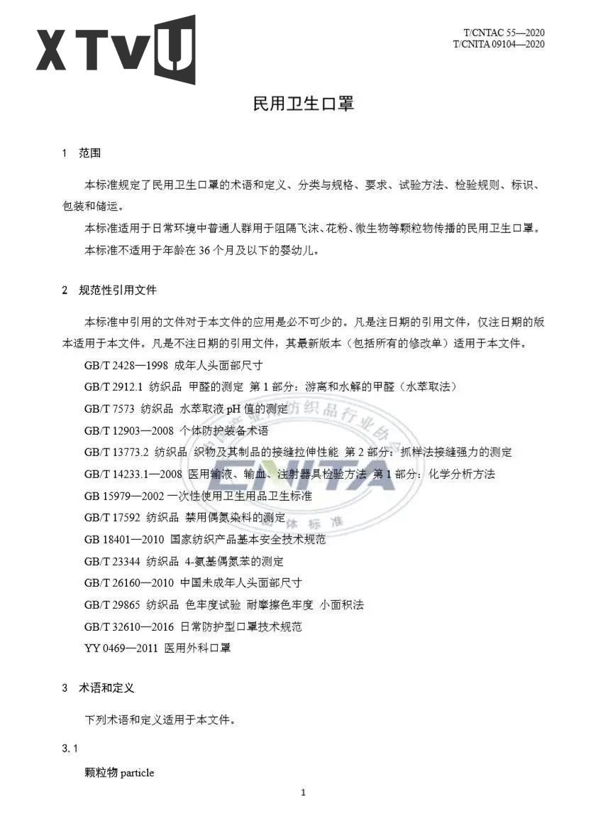 本标准适用于日常环境中普通人群用于阻隔飞沫、花粉、微生物等颗粒物传播的民用卫生口罩。